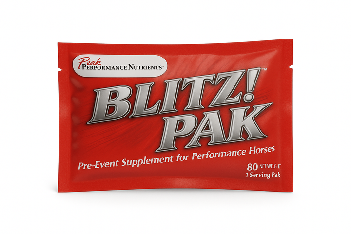 BLITZ! PAK هو معزز طاقة سريع المفعول قبل الحدث، مصمم خصيصًا للخيول التي تتطلب قوة وتركيزًا وقدرة على التحمل فورية أثناء المنافسة.
