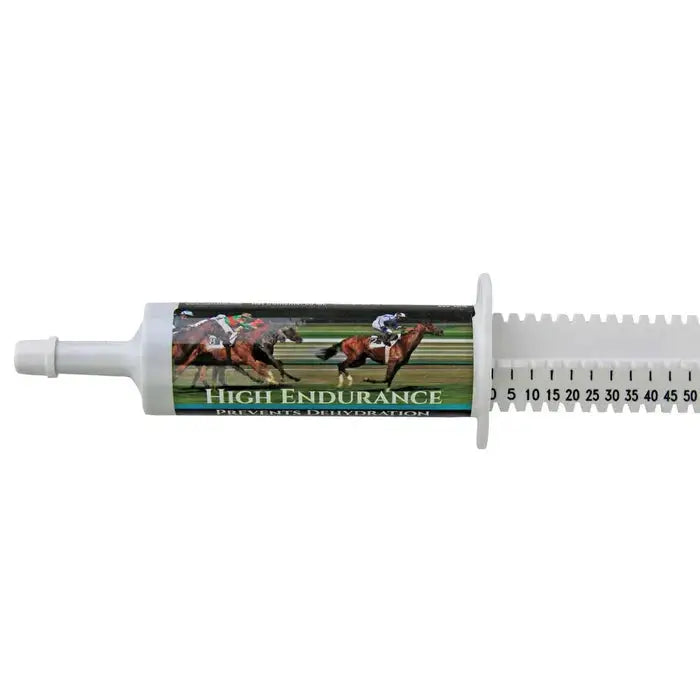 High Endurance is an advanced equine performance paste formulated to support stamina, hydration, and recovery during racing and intense exercise. It delivers a blend of electrolytes, amino acids, and metabolic boosters that combat fatigue, reduce dehydration, and help maintain peak performance under stress.