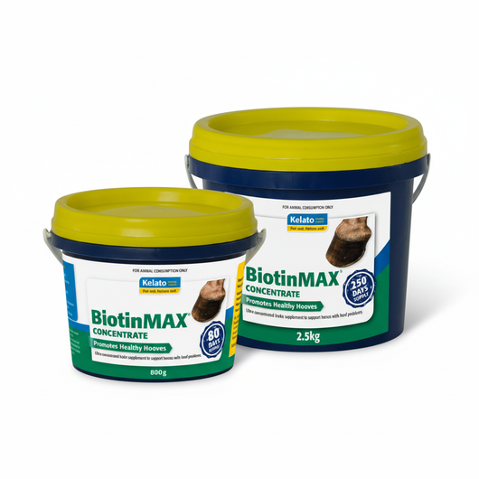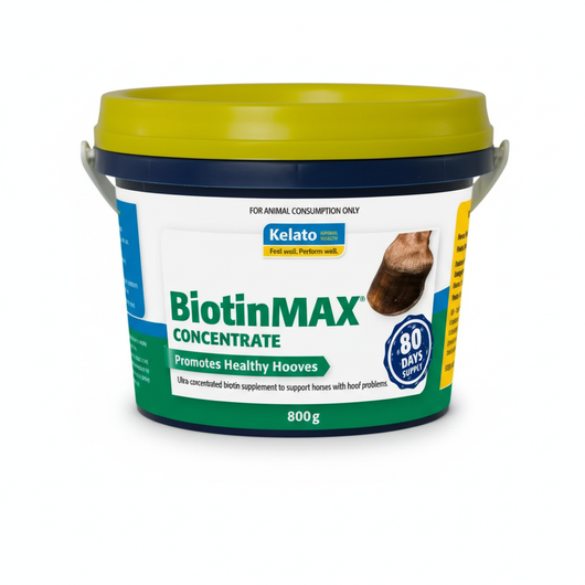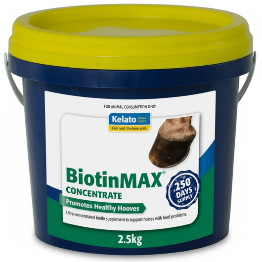 BiotinMAX Concentrate is an ultra-concentrated hoof supplement formulated to promote strong, healthy hooves in horses. It delivers a high daily dose of biotin, a key vitamin essential for keratin production, hoof growth, and integrity. This supplement is especially beneficial for horses with weak, cracked, or brittle hooves, or those recovering from hoof damage.