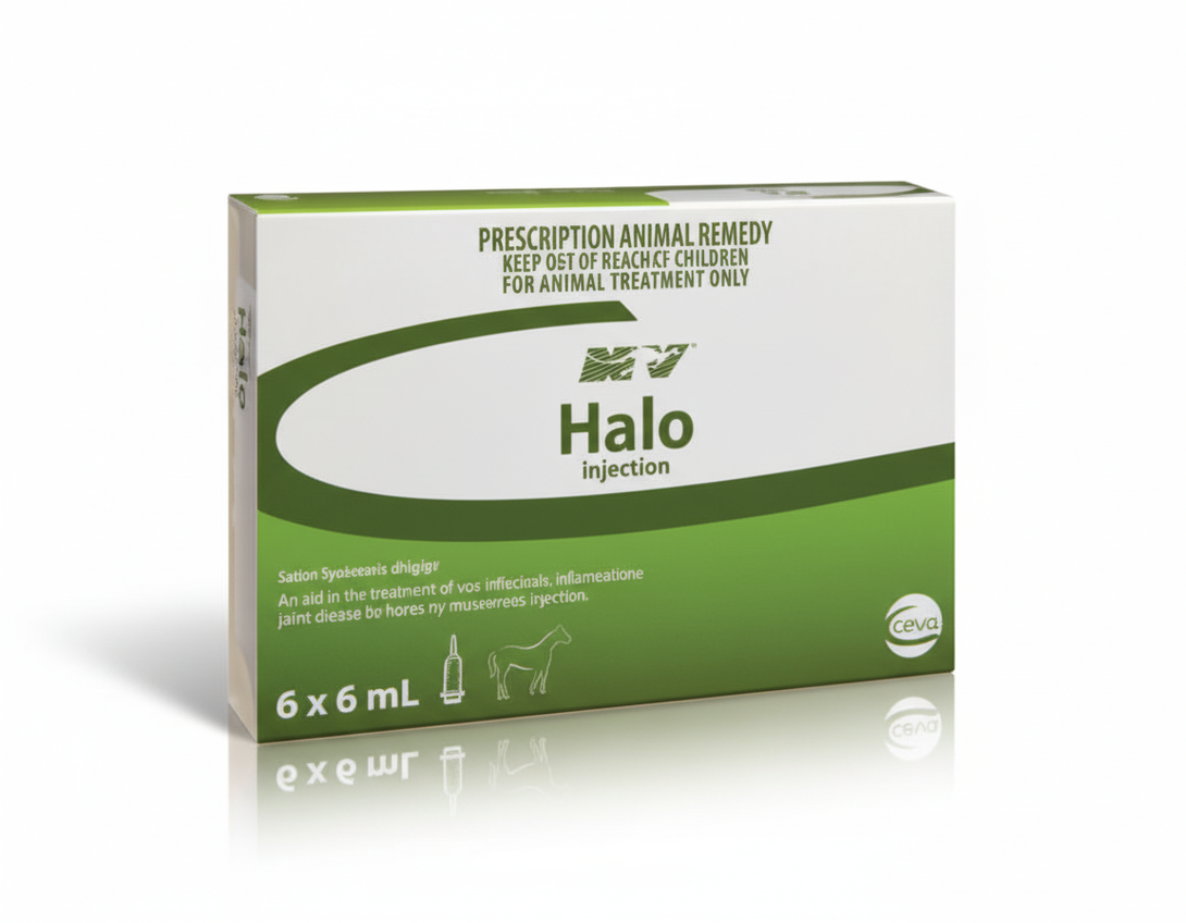 Halo Injection is a non-steroidal anti-inflammatory and chondroprotective agent formulated to aid in the treatment of joint inflammation, synovitis, and degenerative joint disease in horses and camels.