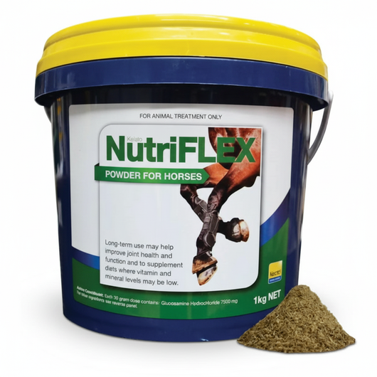 NutriFLEX is a premium joint health supplement formulated for long-term use to support healthy cartilage, joint mobility, and function in horses. It contains a concentrated level of Glucosamine Hydrochloride, an essential building block for joint cartilage repair and protection.