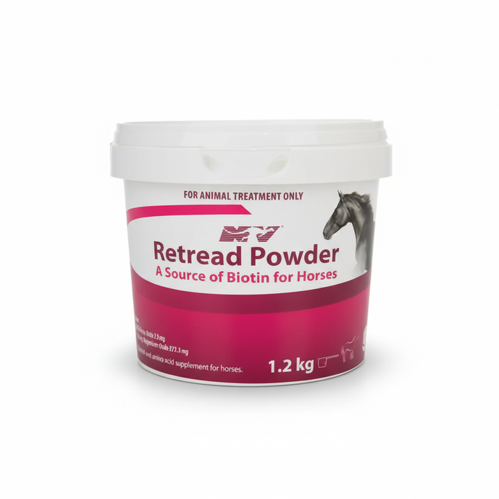 Retread Powder is a premium nutritional hoof and coat supplement formulated specifically for horses.