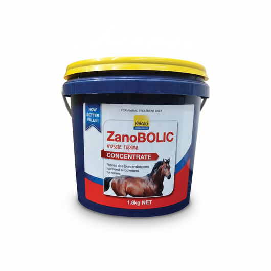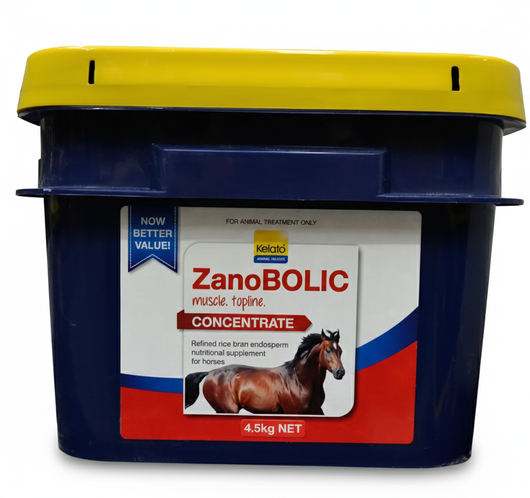 ZanoBOLIC is a scientifically formulated muscle-building supplement designed to enhance lean muscle development, strength, and recovery in performance horses. It contains Gamma Oryzanol, a natural plant sterol derived from rice bran oil, which supports muscle growth, conditioning, and topline development.